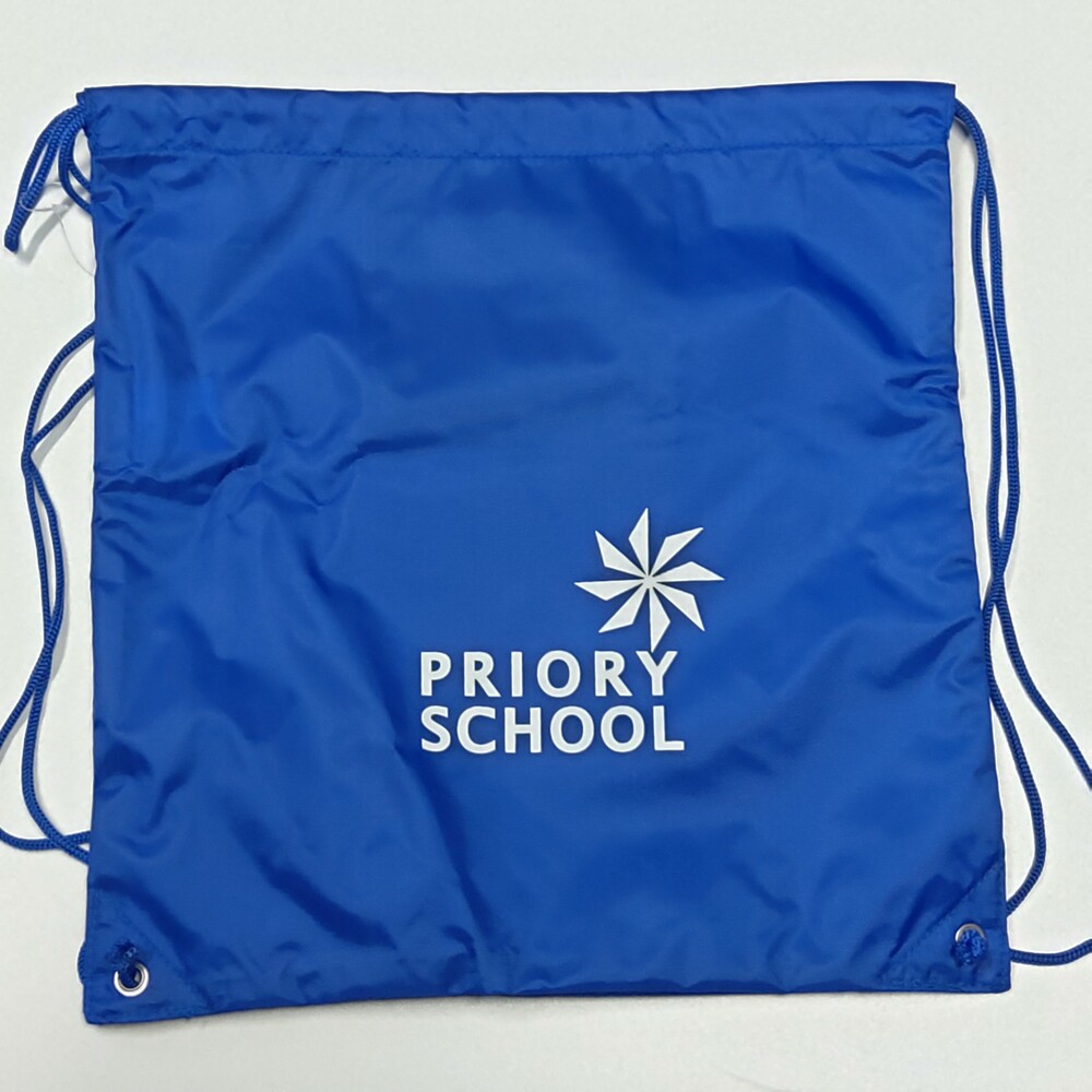 Royal blue drawstring bag, printed with the Priory RC Primary School badge.